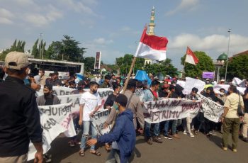 Ratusan warga yang menamakan diri sebagai Forum Komunikasi Peduli Desa Binangun melakukan aksi unjuk rasa di Alun-Alun Cilacap, Rabu (22/6/2022). Mereka meminta kepada Bupati Cilacap untuk memberhentikan dengan tidak hormat Kepala Desa Binangun Kecamatan Binangun Kabupaten Cilacap yang bernama Waluyo secara tidak hormat, karena telah melakukan pencabulan terhadap anak tirinya sendiri yang masih dibawah umur.