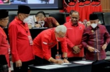 Sementara itu, penandatanganan surat pernyataan itu dipandu Ketua DPP PDIP bidang Kehormatan Komarudin Watubun, surat tersebut juga dibacakan oleh anggota Komisi II DPR RI ini.
