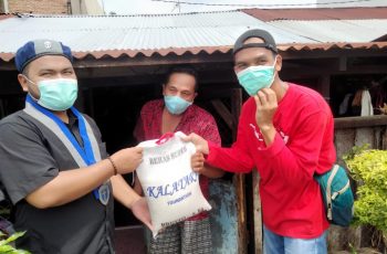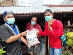 Sejumlah mahasiswa di Sumatera Utara yang tergabung dalam Gerakan Mahasiswa Kristen Indonesia (GMKI) Sumut, melakukan aksi sosial membagikan 50 paket beras “Berbagi, Indonesia Sehat Indonesia Hebat” kepada warga tidak mampu yang terdampak pandemi covid-19, Rabu (15/6/2022).