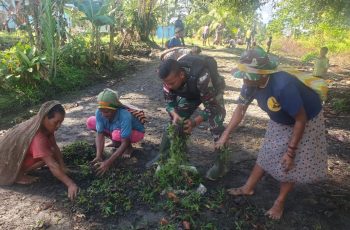 Kemanunggalan Satgas Yonif 126/KC Laksanakan Karya Bakti Bersama Warga Perbatasan Papua