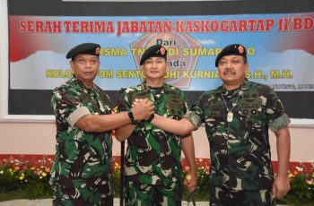 Pangdam III/Siliwangi Mayjen TNI Kunto Arief Wibowo, S.I.P., dan juga sebagai Dankogartap II/Bandung pimpin acara Serah Terima Jabatan (Sertijab) Kepala Staf Komando Garnisun Tetap (Kaskogartap) II/Bandung dari Marsekal Pertama TNI Budi Sumarsosno kepada Kolonel Pom Sentot Adhi K., S.H., M.H., di Mako Gartap II/Bandung Jalan Nias No. 03, Sumur Bandung Kota Bandung, Kamis (16/6/2022).