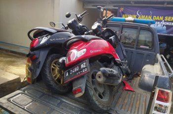 Ketika motor Honda Scoopy Nopol: A-3888-ER yang dikendarain SJ menabrak motor Honda Scoopy Nopol: A-2480-HZ