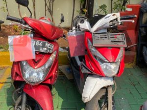 Dari hasil penangkapan tersebut kami mengamankan beberapa barang bukti diantaranya 1 (satu) unit Sepeda motor Yamaha mio Soul warna Merah No.pol B-3164-KCU a.n VENNA Noka : MH314D205DK265588 Nosin 14D1265406 (dalam keadaan kunci kontak rusak), 1 (satu) unit sepeda motor Honda Supra NF 125 No Pol : B-6793-BIH, 1 (satu) unit sepeda motor Honda Beat warna Putih Merah tanpa plat, 2 (dua) Lembar STNK Sepeda Motor, 1 (satu) buah kunci Letter T dan 1 (satu) buah pisau bersarung kulit bergagang kayu warna coklat.