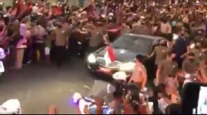 Dengan mengenakan jaket berwarna merah berlogo G20, Presiden Jokowi hadir di stadion sekira pukul 21.25 WITA. Presiden beserta Ibu Iriana menyapa masyarakat yang hadir sembari berjalan memasuki Stadion Marilonga.