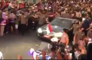 Dengan mengenakan jaket berwarna merah berlogo G20, Presiden Jokowi hadir di stadion sekira pukul 21.25 WITA. Presiden beserta Ibu Iriana menyapa masyarakat yang hadir sembari berjalan memasuki Stadion Marilonga.