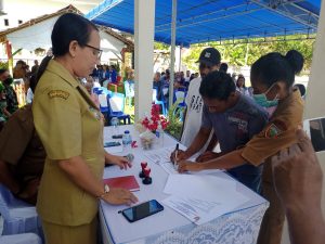 Satgas Kodim Maluku Batalyon Arhanud 11/WBY Pos Ramil Tuhaha bersama Babinsa melaksanakan pengawasan serta pengamanan kegiatan Penyaluran Bantuan Langsung Tunai (BLT) Dana Desa Tahap II TA 2022 oleh Pemerintah Negeri Administratif Mahu kepada 100 KK (Kartu Keluarga) selama 3 bulan (April – Juni 2022) di Negeri Administratif Mahu, Kec. Saparua Timur, Kab. Maluku Tengah – Maluku, Minggu (19/6/2022).