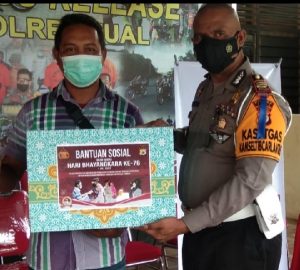 Kepolisian Resor (Polres) Kota Tual melaksanakan Bakti Sosial (Baksos) Polri dan Bantuan Sosial (Bansos) serentak dalam rangka Hari Bhayangkara ke-76 Senin, (20/6/2022).