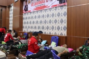 Polres Tulang Bawang Gelar Bakti Kesehatan donor darah sebanyak 102 orang personil satuan Kodim 0426 Tulang Bawang, Polres dan Polsek jajaran,Bhayangkari, serta Sat Pol PP