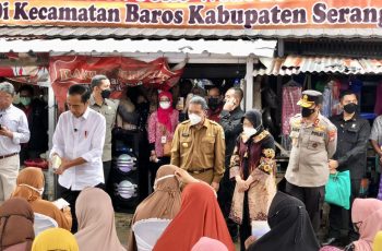 Saat di pasar Baros Presiden menyapa para pedagang. Dirinya meminta kepada para pedagang untuk selalu bersemangat dan tetap menjalankan protokol kesehatan karena pandemi belum berakhir. “Bapak-bapak dan ibu ibu, Covid-19 ini belum berakhir, dimohon untuk tetap menjaga protokol kesehatan dan tetap semangat,“ kata Jokowi.