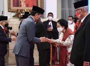 Turut hadir dalam pelantikan tersebut yaitu Wakil Presiden Republik Indonesia Ma’ruf Amin dan Sekretaris Kabinet Pramono Anung.