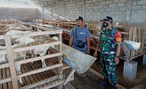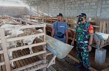 Babinsa Sukamaju Serma Suhartono dalam kegiatannya lansung meninjau dan memastikan kepada warga pemilik ternak di Desa Binaan.