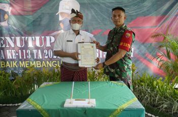 Acara penutupan TMMD juga diisi dengan penandatanganan dan penyerahan hasil pelaksanaan TMMD ke 113 tahun 2022 dari Dandim 1615/Lotim Letnan Kolonel Inf Amin Muhammad Said selaku Dansatgas TMMD ke 113 kepada Pemerintah Daerah Lotim yang diterima oleh Bupati Lotim.