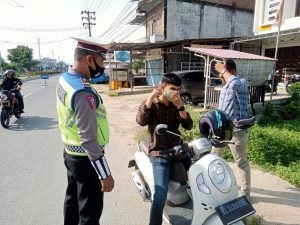 Antisipasi Covid Varian Baru, Satlantas Polres Aceh Timur Bagikan Masker Kepada Pengguna Jalan.