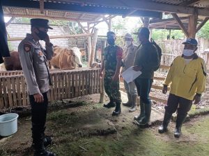 “Kepala Pelaksana petugas lapangan Bpk Agus Setyono, SP. mengatakan bahwa pihaknya melakukan pemeriksaan,penyemprotan kandang dan pemberian vaksin selalu di dampingi oleh Babinsa dan Babinkamtibmas karena wabah pada hewan ternak saat ini benar benar membutuhkan sinergitas yang militan bertujuan untuk menekan penyebaran penyakit mulut dan kuku yang menjangkit pada hewan ternak yang di miliki masyarakat, ungkapnya.