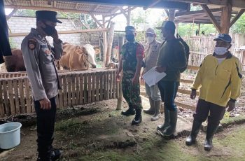“Kepala Pelaksana petugas lapangan Bpk Agus Setyono, SP. mengatakan bahwa pihaknya melakukan pemeriksaan,penyemprotan kandang dan pemberian vaksin selalu di dampingi oleh Babinsa dan Babinkamtibmas karena wabah pada hewan ternak saat ini benar benar membutuhkan sinergitas yang militan bertujuan untuk menekan penyebaran penyakit mulut dan kuku yang menjangkit pada hewan ternak yang di miliki masyarakat, ungkapnya.