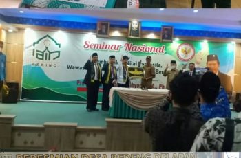 Kepala Badan Pembinaan Ideologi Pancasila (BPIP) Republik Indonesia (RI) Yudian Wahyudi memberikan penghargaan kepada Desa Bedeng VIII Kecamatan Kayu Aro Barat, Kabupaten Kerinci, Provinsi Jambi, senin (18/07/2022) di ruang aula IAIN Kab.Kerinci.