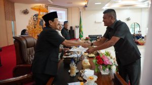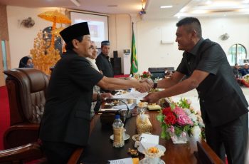 Pelaksana Tugas ( Plt) Bupati Langkat H Syah Afandin SH melalui Sekdakab Langkat dr H Indra Salahudin MKes MM menghadiri Rapat Paripurna DPRD Kabupaten Langkat, di Ruang Rapat Paripurna DPRD Kabupaten Langkat, Stabat, Kamis (30/6/2022).