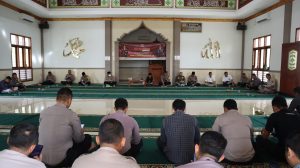 Personel Polres Serang laksanakan pengajian rutin mingguan di Masjid As-Salam Polres Serang. Kamis, (14/07/2022).
