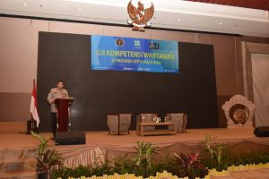 Kabid Humas Polda Kepri Kombes Pol Harry Goldenhardt S., S.IK., M.Si., menjadi Narasumber mata uji simulasi pada uji kompetensi wartawan yang digelar oleh Komisi Pemberdayaan Organisasi Dewan Pers, yang dilaksanakan di Best Western Panbil, Jumat (1/7/2022).