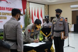 Pasca pengambilan sumpah dan serah terima secara resmi, para pejabat lama dan pejabat baru langsung diminta untuk menandatangani Pakta Integritas yang merupakan target kinerja yang harus dicapai para pejabat baru dalam pelaksanaan tugasnya di satuan kerjanya masing-masing.