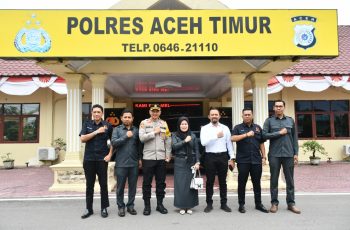 Ketua Panwaslih Aceh Timur Maimun, S.Pd bersama empat anggotanya; H. Iskandar A.Gani, S.E.; Saifullah, S.T.; Rita Fahria, S.T. dan Musliadi, S.Pd. disambut langsung oleh Kapolres Aceh Timur didampingi Kasat Reskrim AKP Miftahuda Dizha Fezuono, S.I.K.