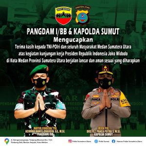Kapolda Sumut, Irjen Pol RZ Panca Putra Simanjuntak, Jumat (8/7), mengucapkan terima kasih kepada masyarakat Sumatera Utara dalam mendukung kunjungan kerja Presiden RI yang berjalan cukup kondusif.