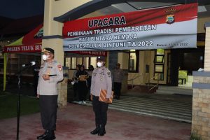Pada pukul 05.00 WIT Kabagops Polres Teluk Bintuni AKP VHALIO AGAFE, S.I.K Pimpin pelaksanaan apel pengecekan kepada personel bintara remaja dalam pengenalan lingkungan bagi bintara afirmasi Otsus T.A 2022 dilingkungan Polres Teluk Bintuni.