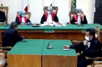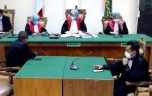 Keterangan Foto: Para Majelis Hakim PN Sukadana, Lampung Timur, saat memimpin persidangan jelang vonis Wilson Lalengke