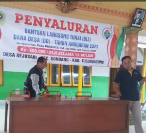 Sebanyak 93 KPM (keluarga Penerima Manfaat) masyarakat Desa Rejosari pada tanggal 15Juli 2022, telah memenuhi undangan dari Pemerintah Desa Rejosari terkait penerimaan Bantuan Langsung Tunai Dana Desa (BLT-DD) yang bertempat di BalaiDesa Rejosarikecamatan Gondang Kabupaten Tulungagung.