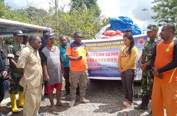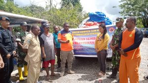 Penyaluran Bantuan tersebut, turut hadir Kepala Badan Penanggualangan Bencana Daerah BPBD Kabupaten teluk Bintuni, Sertu Wilson.P Koramil 1806-01 Teluk Bintuni, Anggota Polres Brimob, Ipda Edi Purnomo.