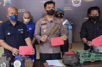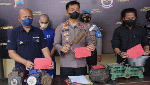 Barang bukti yang diamankan diantaranya dua buah mesin pompa air, satu timbangan tembor, dinamo mesin cabut bulu ayam, dua buah golok, tang jepit, kunci pas ukuran 10 dan 12, karung plastik warna putih, linggis, gergaji besi, tas cangklong warna hitam dan satu unit sepeda motor.
