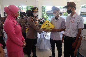 Selain vaksinasi gratis, Bantuan berupa sembako juga diberikan kepada seluruh warga masyarakat yang hadir usai melaksanakan suntik vaksin.