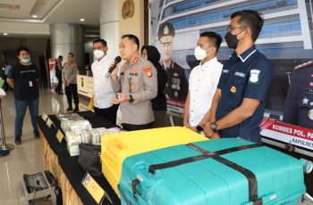 Ketiga pelaku membawa narkoba jenis sabu menggunakan koper besar melalui jalur darat dengan menggunakan kendaraan bus