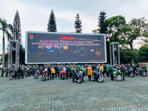 Pangdam III/Slw Mayjen TNI Kunto Arief Wibowo didampingi Ketua Persit Kartika Chandra Kirana Daerah III/Siliwangi Ny. Mia Kunto Arief Wibowo, pimpin Touring sepeda motor dalam rangka meresmikan Lapangan tembak dan peninjauan tempat latihan. Touring dimulai dari titik start Lapangan Upacara Kodam III/Siliwangi Jl. Aceh No. 69 Kota Bandung Jabar, Senin (4/7/2022).