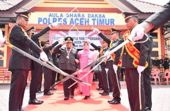 Upacara Pedang Pora Antarkan Anggota Polres Aceh Timur Masuki Purna Bhakti.