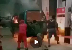Viral di media sosial, video mobil minibus terbakar di sebuah SPBU. Para petugas SPBU terlihat panik memadamkan api yang mulai membesar dari bawah mobil tersebut, selanjutnya petugas lainnya berusaha mendorong agar menjauh dari mesin pompa BBM.