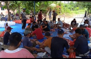 Warga Kelurahan Perdamean Kecamatan Rantau Selatan Sembelih 37 Ekor Sapi, Sedang Dagingnya Dibagi Pada Ratusan Orang.