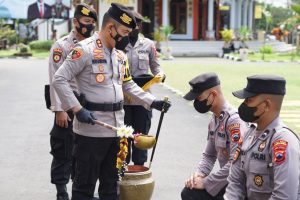 Pembaretan yang digelar dua hari berturut-turut secara resmi ditutup Kapolres Kebumen AKBP Burhanuddin dengan penyiraman air kembang dan pemasangan baret coklat khas Sat Samapta, Jumat 12 Agustus 2022.