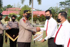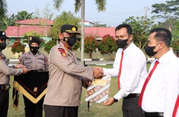 Kapolres Kampar dalam amanatnya menyampaikan ucapan selamat kepada para personel yang mendapat penghargaan ini.