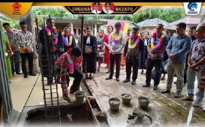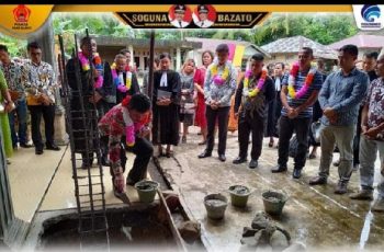 Bupati Nias Barat, Khenoki Waruwu menghadiri acara peletakan batu pertama pembangunan gedung gereja ONKP Jemaat Simae’asi, Resort Ulu Moro’o, di Desa Simae’asi, Kecamatan Mandrehe, Minggu 28/8/2022.