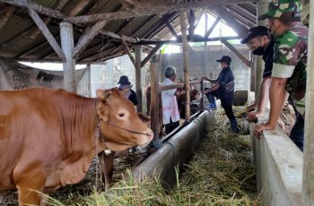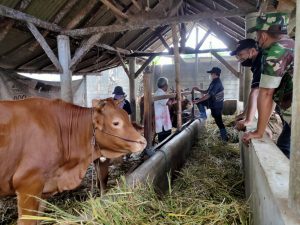 Cegah Penyakit Pada Hewan Ternak, Babinsa Koramil 0825/04 Genteng Dampingi Vaksinasi PMK diwilayah Binaan
