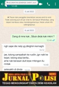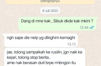 ame nak berasan duit brpe rmbngon itu mntak ( jay ,tolong sampaikan kepada rusilin jangan di naikan ke KEJARI , tolong stop beritanya , kalau nego UANG berapa rombongan itu mintak ” cetus kepala desa penyandingan melalui pesan whatsaap 6 juli 2022.