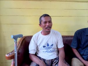 Saat awak media mendatangi kediamannya, dia berjalan sedikit demi sedikit dengan memakai tongkat, tampak juga tangan kanan dan kaki kanan sudah tidak bisa lagi digerakkan seperti biasanya. Sesekali kata dia, kalau miring sedikit saja tongkatnya maka langsung terjatuh.