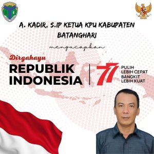 Ketua KPU Kabupaten Batanghari A.Kadir S.IP Mengucapkan Selamat Ulang Tahun RI ke 77 dengan Motto Pulih Lebih Cepat, Bangkit Lebih Kuat
