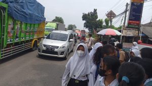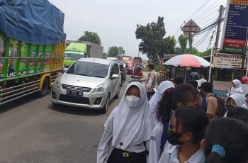 Personel Polsek Cikande Polres Serang melaksanakan pelayanan penjagaan dan pengaturan pada saat jam keluar Siswa sekolah di Jalan Raya Serang – Tangerang tepatnya simpang Kukun Desa Parigi Kec. Cikande, Jumat (26/08/2022)