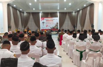 “Betapa tulus dan ikhlasnya mereka dalam perjuangan mempertahankan kemerdekaan negeri yang kita cintai ini. Maka dari itu peringatan upacara detik-detik proklmasi kemerdekaan Republik Indonesia yang telah kita laksanakan, bukan dimaksud hanya sebatas acara seremonial belaka, akan tetapi upacara peringatan hari ulang tahun kemerdekaan Republik Indonesia yang ke-77 ini menjadi refleksi bagi kita semua untuk membangun negeri,” sebut Ir Mahyuddin.