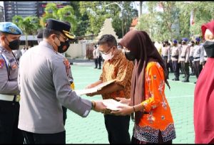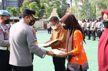 Penghargaan tersebut, diberikan langsung oleh Kapolresta Banyuwangi, Kombes Pol Deddy Foury Millewa saat menggelar apel jam pimpinan .
