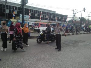Polsek Ciruas Polres Serang Melaksanakan Pengaturan Lalin di Perempatan Lampu Merah Ciruas