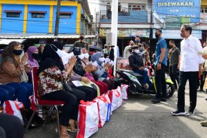 “Pagi hari ini saya, sama seperti di provinsi-provinsi yang lain, memberikan bantuan sembako kepada penerima manfaat PKH dan juga memberikan tambahan usaha, tambahan modal kerja kepada pedagang-pedagang di pasar, pada pedagang kaki lima,” ujar Presiden.