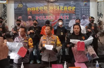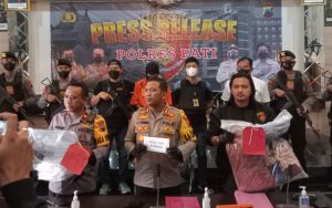 ” Setelah buron beberapa hari pelaku kita amankan dengan perjalanan kapal dari lokasi selama dua hari hingga kini baru sampai Mapolres Pati Langsung Kita adakan Press Release ” imbuhnya .